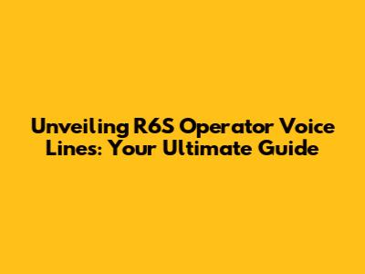 Unveiling R6S Operator Voice Lines: Your Ultimate Guide
