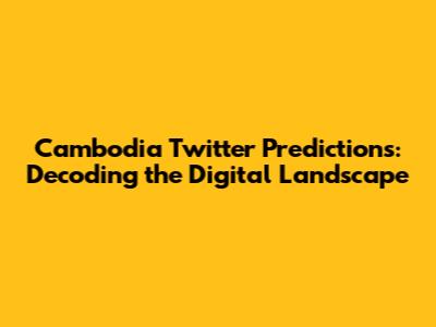 Hey guys! Let's dive into the fascinating world of Cambodia Twitter predictions. We're talking about understanding what's buzzing on Twitter about Cambodia, analyzing trends, and maybe even making some educated guesses about what the future holds. This isn't just about guessing; it's about looking at data, understanding the online conversation, and using that info to get a clearer picture. It's like being a digital detective, piecing together clues to understand the story that Twitter is telling about Cambodia. So, let's get started and explore what we can uncover about the online landscape of this vibrant nation.