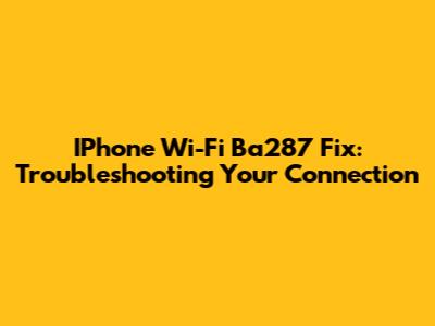 IPhone Wi-Fi Ba287 Fix: Troubleshooting Your Connection