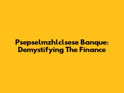 Psepselmzhlclsese Banque: Demystifying The Finance
