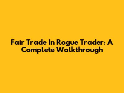 Fair Trade In Rogue Trader: A Complete Walkthrough