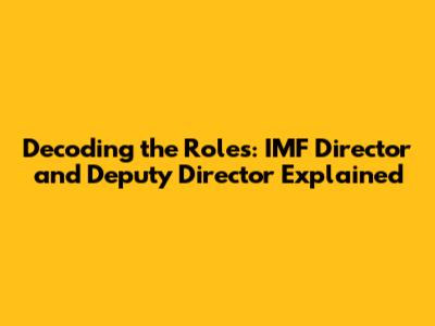 - Deputy Director: Supports the Director, manages day-to-day operations, and often oversees specific areas of the IMF's work.