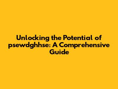Unlocking the Potential of psewdghhse: A Comprehensive Guide