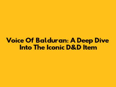 Voice Of Balduran: A Deep Dive Into The Iconic D&D Item
