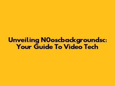 Unveiling N0oscbackgroundsc: Your Guide To Video Tech