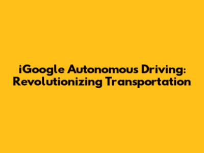 - Development: iGoogle is currently in the advanced stages of developing its autonomous driving technology. They have been testing their vehicles on public roads for many years, and they are constantly improving their systems.