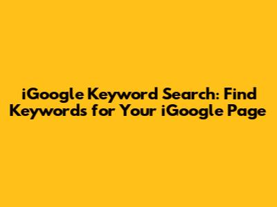 In essence, iGoogle keyword search was all about making your page discoverable. You wanted to use the right words and phrases so that people interested in your topic could easily find your page, whether they were searching within iGoogle or on the broader internet.