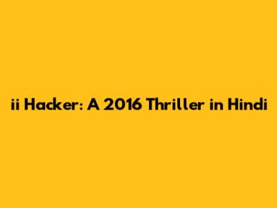 Ii Hacker: A 2016 Thriller In Hindi