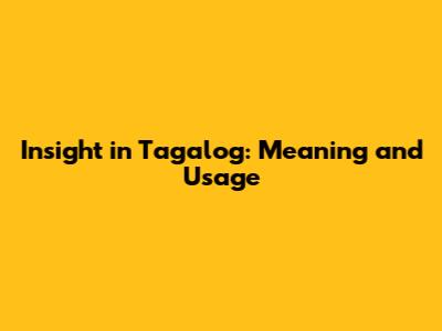 Insight In Tagalog: Meaning And Usage