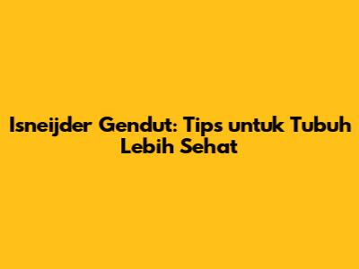 Isneijder Gendut: Tips Untuk Tubuh Lebih Sehat