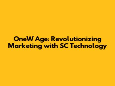 How OneW Age is Implementing SC Technology