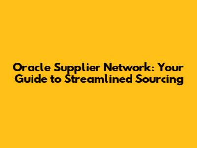 Are you looking to revolutionize your sourcing and procurement processes? Guys, let's dive into the world of the Oracle Supplier Network! This comprehensive guide will walk you through everything you need to know to streamline your operations, improve collaboration with suppliers, and ultimately boost your bottom line. The Oracle Supplier Network isn't just a tool; it's a strategic advantage in today's competitive business landscape. By leveraging its power, you can gain unparalleled visibility into your supply chain, reduce risks, and foster stronger, more reliable relationships with your suppliers. So, buckle up, and let's explore how the Oracle Supplier Network can transform your business!