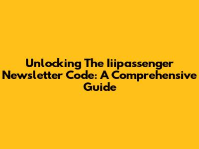 Unlocking The Iiipassenger Newsletter Code: A Comprehensive Guide