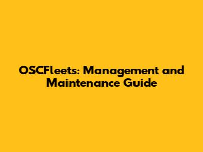 OSCFleets: Management And Maintenance Guide