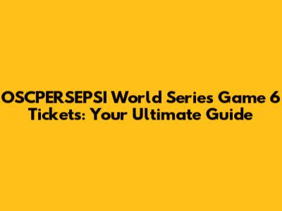 Why OSCPERSEPSI World Series Game 6 Tickets Are So Hot