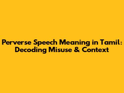 Perverse Speech Meaning In Tamil: Decoding Misuse & Context