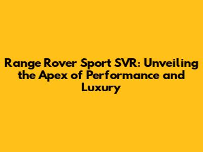 Hey car enthusiasts! Are you ready to dive deep into the world of the Range Rover Sport SVR? This beast isn't just an SUV; it's a statement. It's about raw power, exquisite luxury, and a driving experience that will leave you breathless. We're going to explore everything from its incredible performance to its luxurious interior, and even touch upon what it takes to keep this high-performance machine running smoothly. Buckle up, because we're about to embark on an exciting journey!