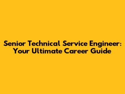 - Senior Technical Service Engineer: This is the role we're discussing – a position of significant responsibility, expertise, and leadership.
