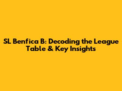 Hey guys, let's dive into the fascinating world of SL Benfica B and, of course, their league table! Understanding the league table is super important if you're a fan, a budding scout, or just curious about how the team is performing. This isn't just about looking at numbers; it's about seeing the story behind them. We're going to break down everything, from the basics of what a league table is to how to analyze Benfica B's position, their rivals, and what it all means for their season. So, grab a coffee, and let's get started!