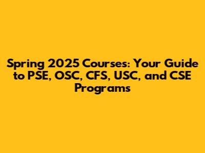 Hey everyone! Are you guys ready to dive into the exciting world of Spring 2025 courses? This guide will break down everything you need to know about the PSE (presumably, depending on context, Professional Studies or a similar acronym), OSC (likely, Open Source Community, but verify), CFS (maybe, Center for Family Services or a financial services program), USC (University of Southern California, or another university), and CSE (Computer Science and Engineering) programs. We'll cover what to expect, how to prepare, and how to make the most of your academic journey. Let's get started!