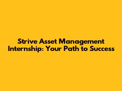 Strive Asset Management Internship: Your Path To Success