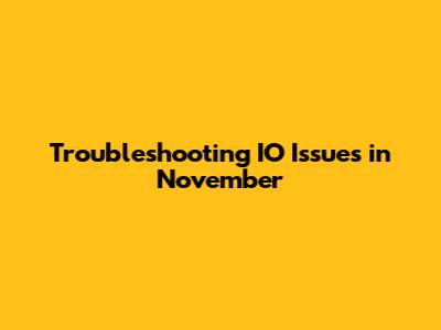 Troubleshooting IO Issues In November