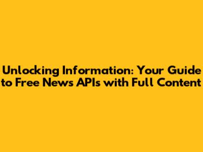 Unlocking Information: Your Guide To Free News APIs With Full Content