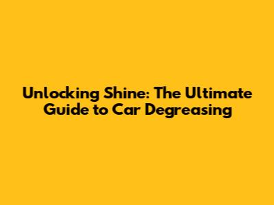 Unlocking Shine: The Ultimate Guide To Car Degreasing