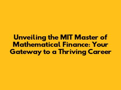 Hey everyone! Are you ready to dive into the exciting world of finance, specifically the MIT Master of Mathematical Finance program? This is a serious game-changer, and if you're aiming for a top-tier career in the financial industry, then stick around because we're about to break down everything you need to know. We'll be covering what this program is all about, who it's for, what you can expect, and how it can launch your career into orbit. Trust me, it's pretty awesome.