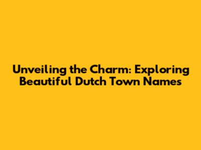 Popular Dutch Town Names: A Journey Through the Country