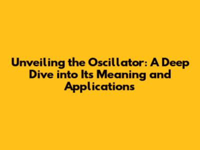 Unveiling The Oscillator: A Deep Dive Into Its Meaning And Applications