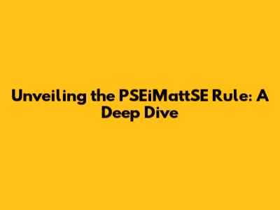 First off, what does PSEiMattSE really mean? Well, folks, I'm here to tell you that it's all about context. The term itself is super specific, and without context, it's hard to pin down exactly what it refers to. The "Rule" part suggests it is a set of guidelines or a framework, which is where things get interesting. So, let's break it down and look at possible interpretations.