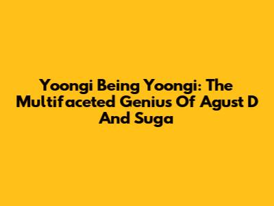 Yoongi Being Yoongi: The Multifaceted Genius Of Agust D And Suga